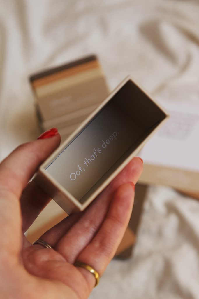 I didn’t think it would be possible to love another little brown box more than the original version but, oh boy, was I proven wrong. This box holds so much power to deepen your connection with your partner and explore topics that you maybe otherwise wouldn’t have. It’s an incredible tool for connection in our home and I highly, highly reccommend every couple have this little box in their tool kit (it also makes the perfect engagement/wedding gift). Trust me, you won’t regret this purchase.